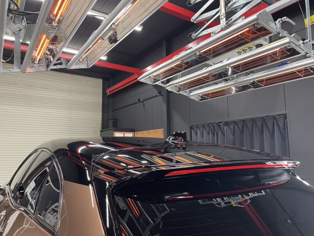 四国・香川県エリア最大級のコーティング設備を持つカーケアグランツではコーティング塗布後に遠赤外線ヒーター焼き付け加工を行い強制乾燥をさせることで性能・艶感・光沢を向上させています。