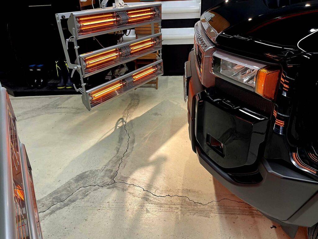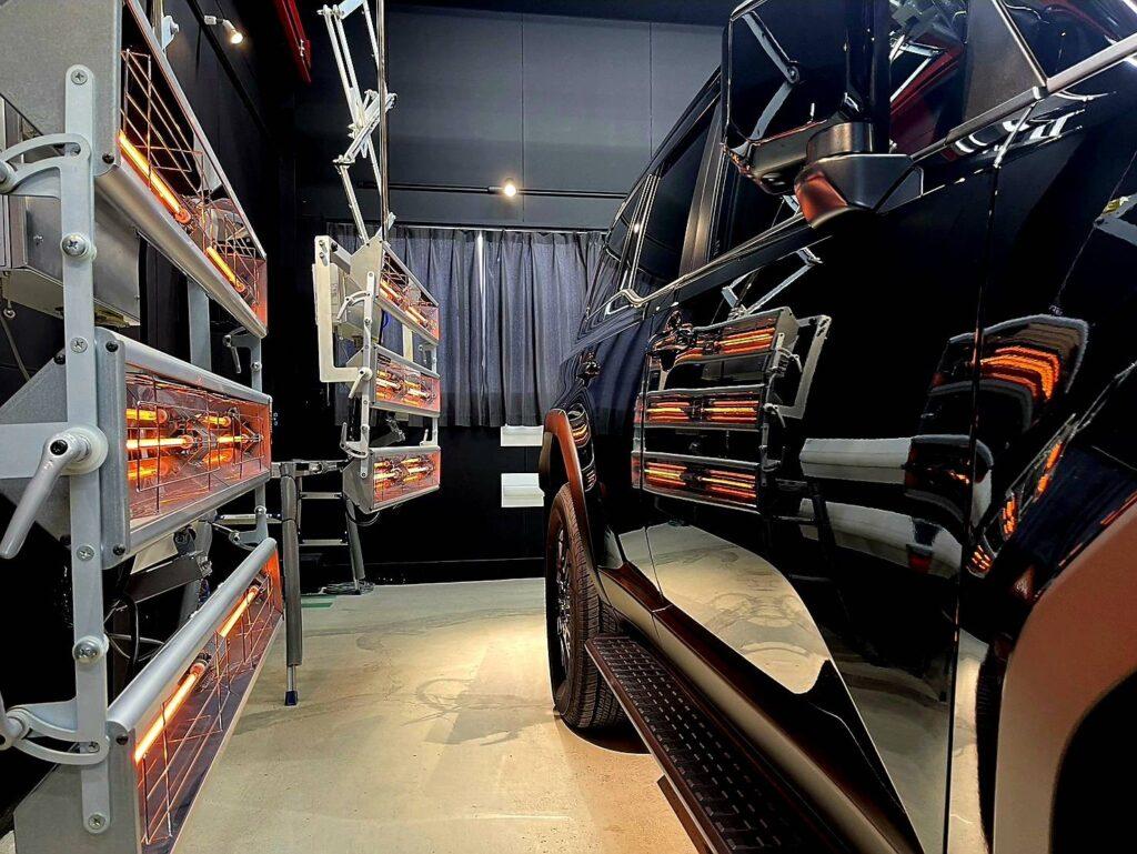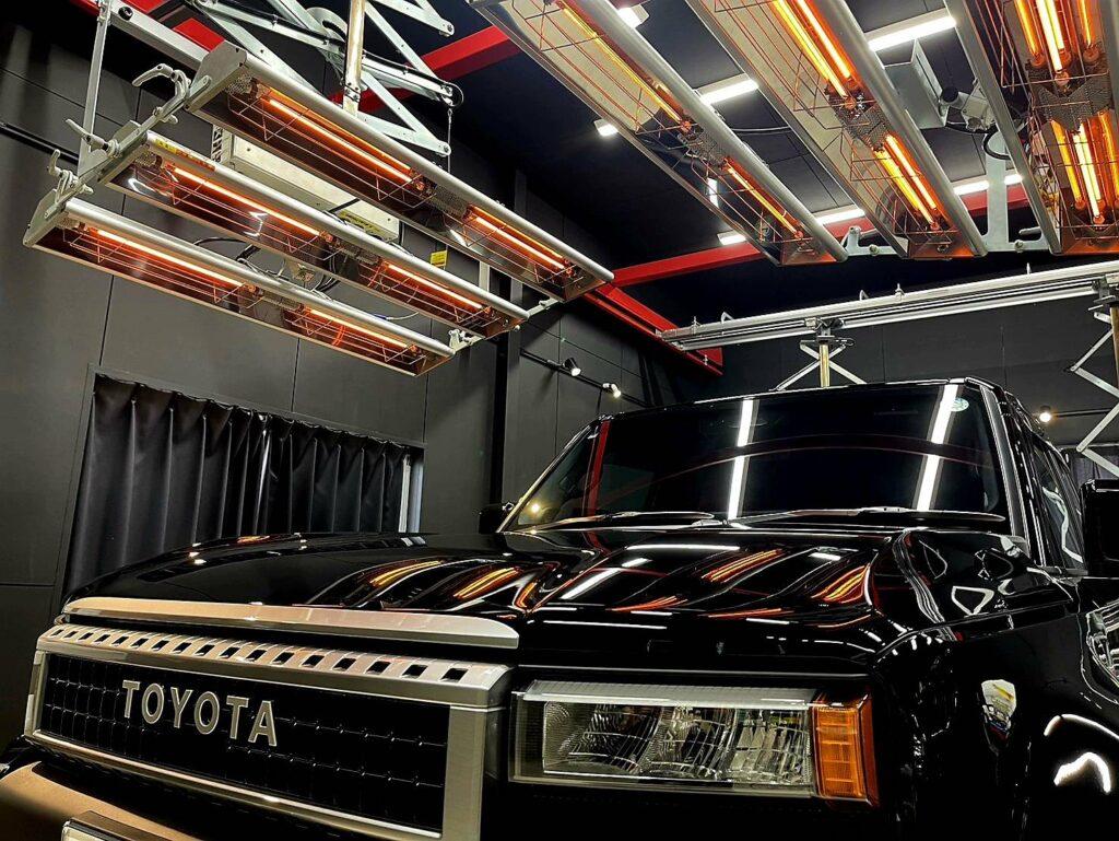 コーティング専門店ならでは、遠赤外線ヒーター乾燥で、コーティング剤の硬化・定着を促します。