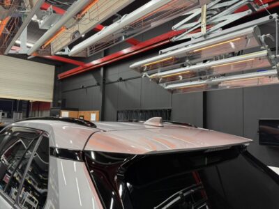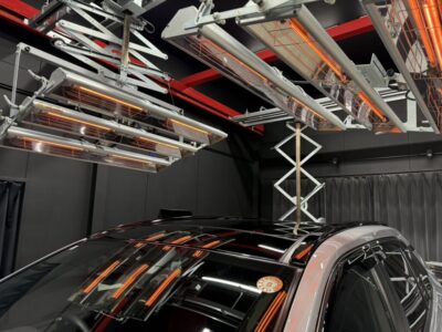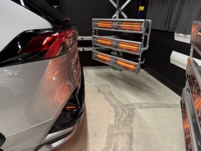 仕上げは遠赤外線カーボンヒーターによる熱乾燥装置で完全硬化させたうえで納車いたします。