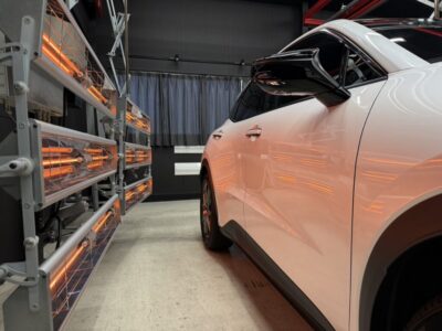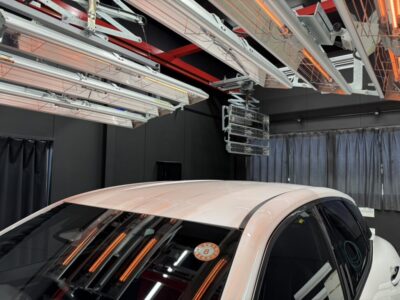 仕上げは遠赤外線カーボンヒーターによる熱乾燥装置で完全硬化させたうえで納車いたします。