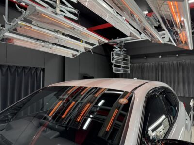 仕上げは遠赤外線カーボンヒーターによる熱乾燥装置で完全硬化させたうえで納車いたします。