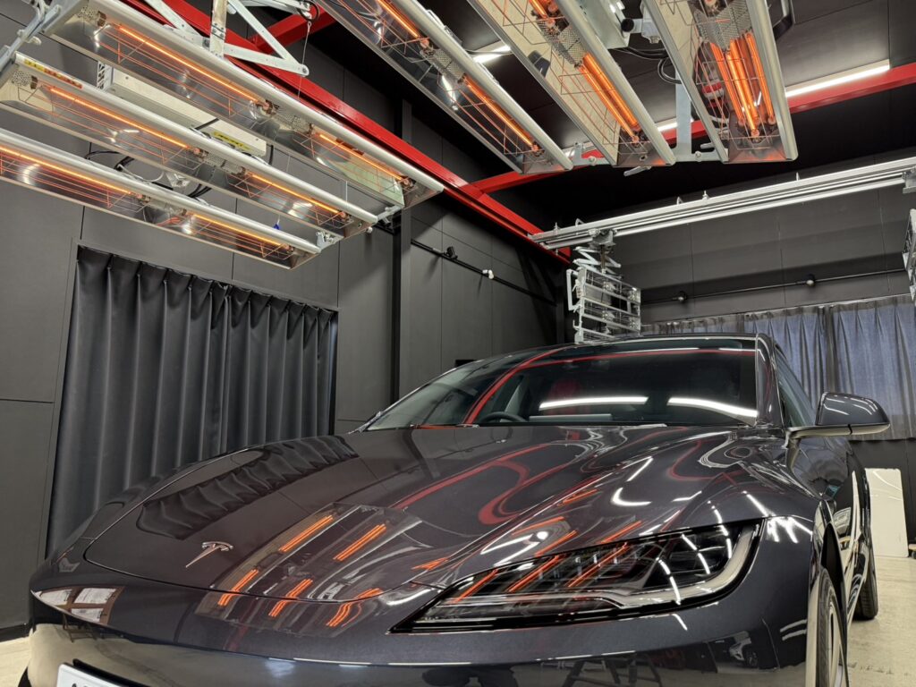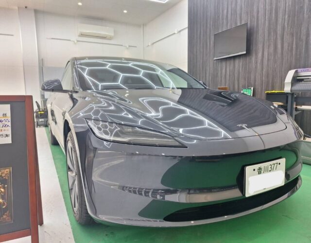 テスラモデル3にセラミックコーティングCrystalSS施工|遮熱カーフィルム施工
