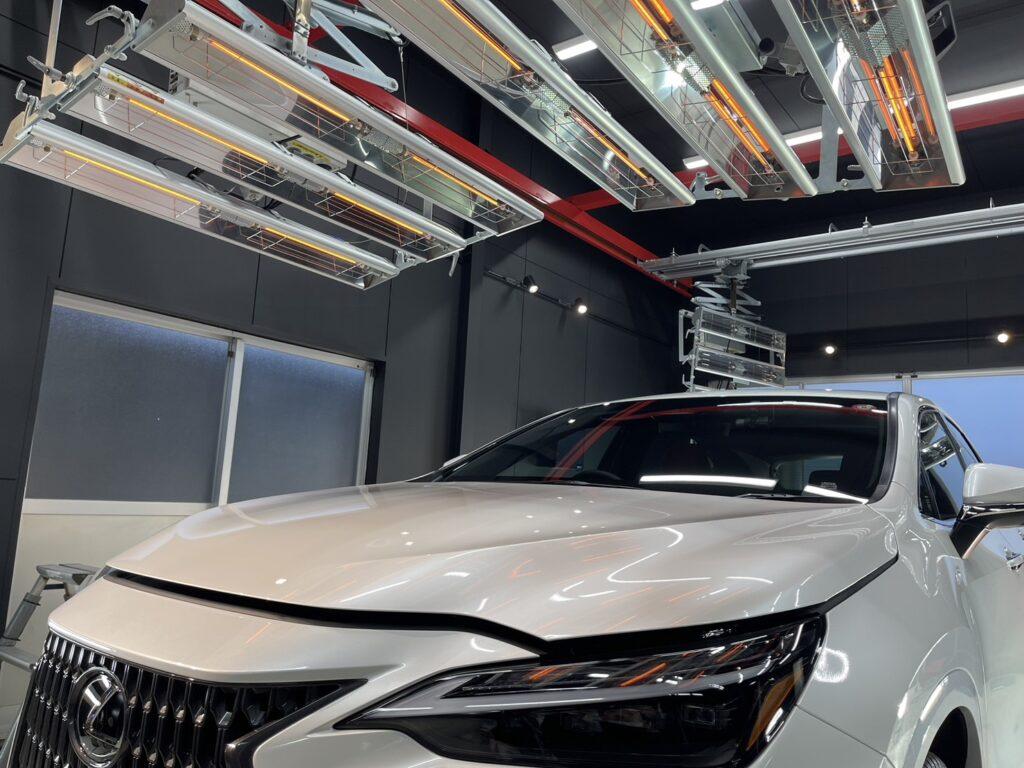 カーケアグランツのカーコーティングは熱乾燥により完全硬化させるため、硬化不良を防ぎ水弾きや耐久、光沢、硬度を最大限引き上げることが可能になりました。自然乾燥時に比べ光沢が向上するというメリットが得られます。